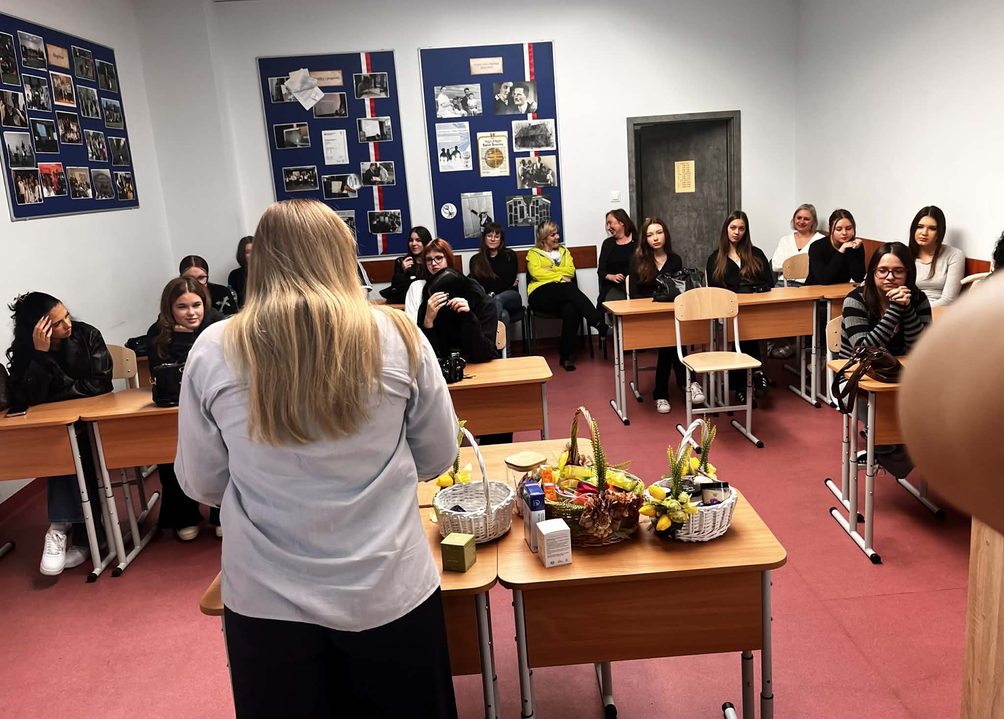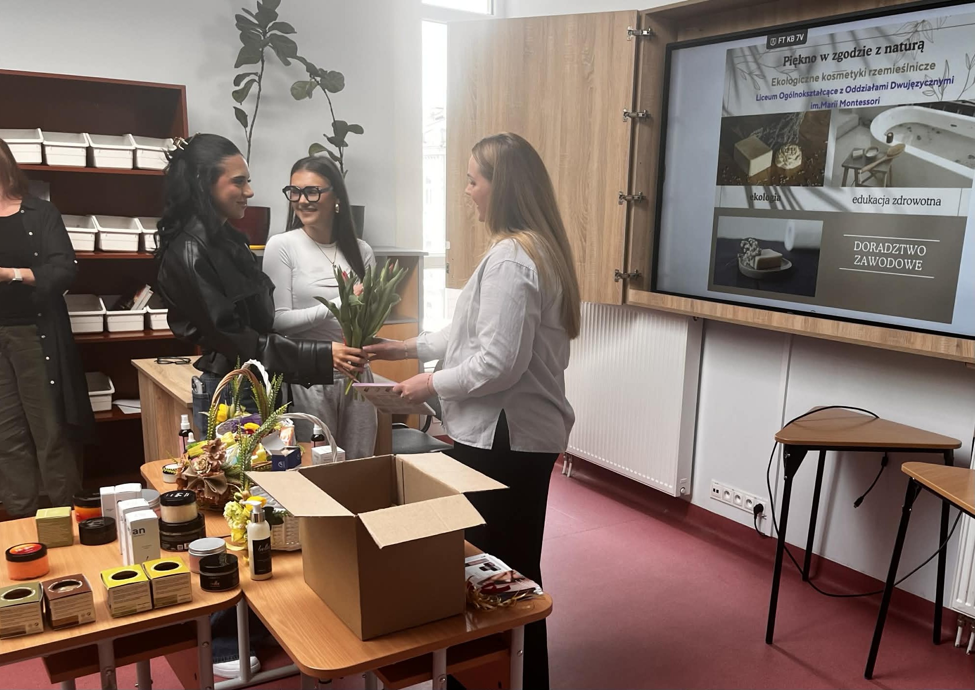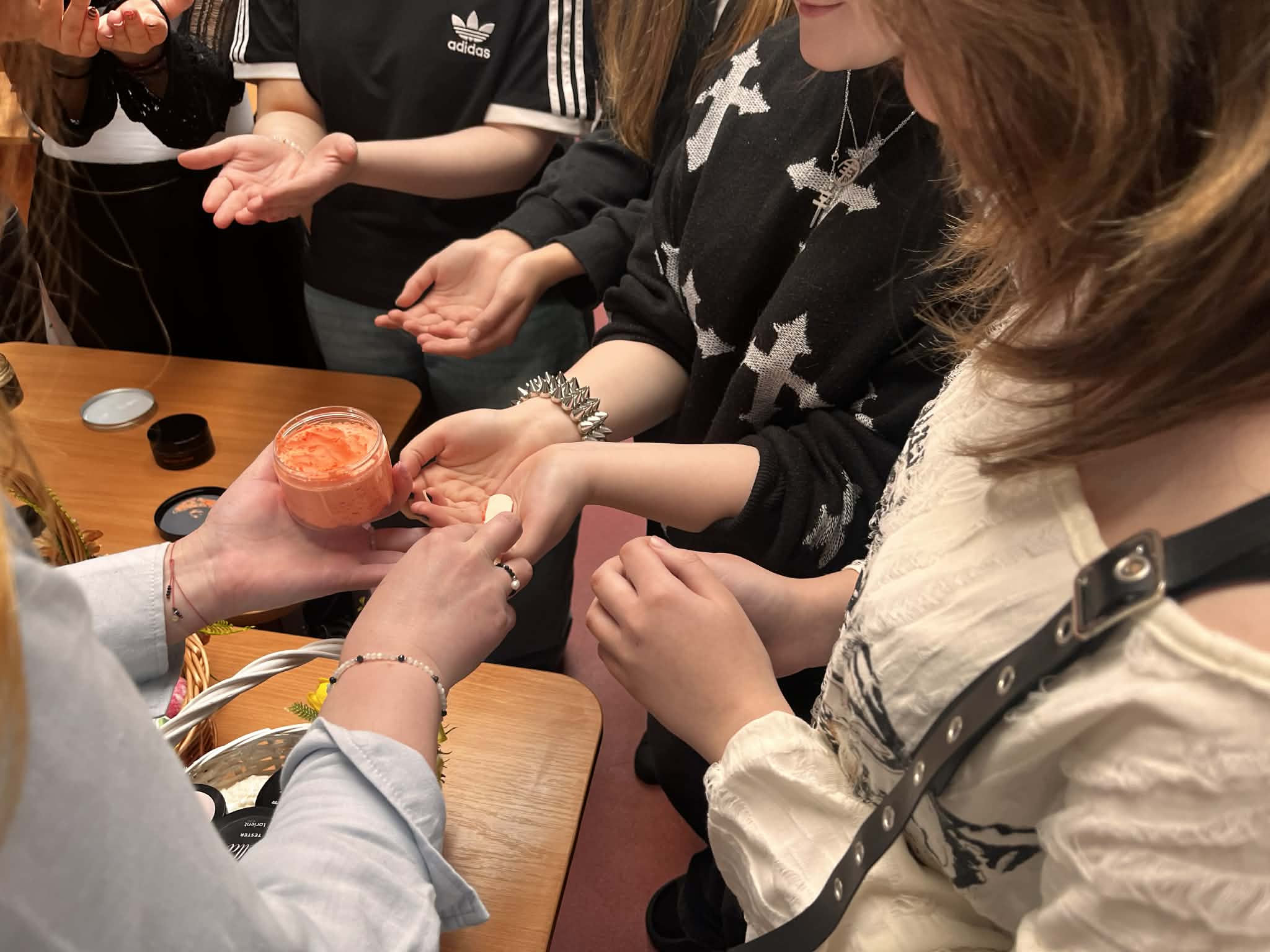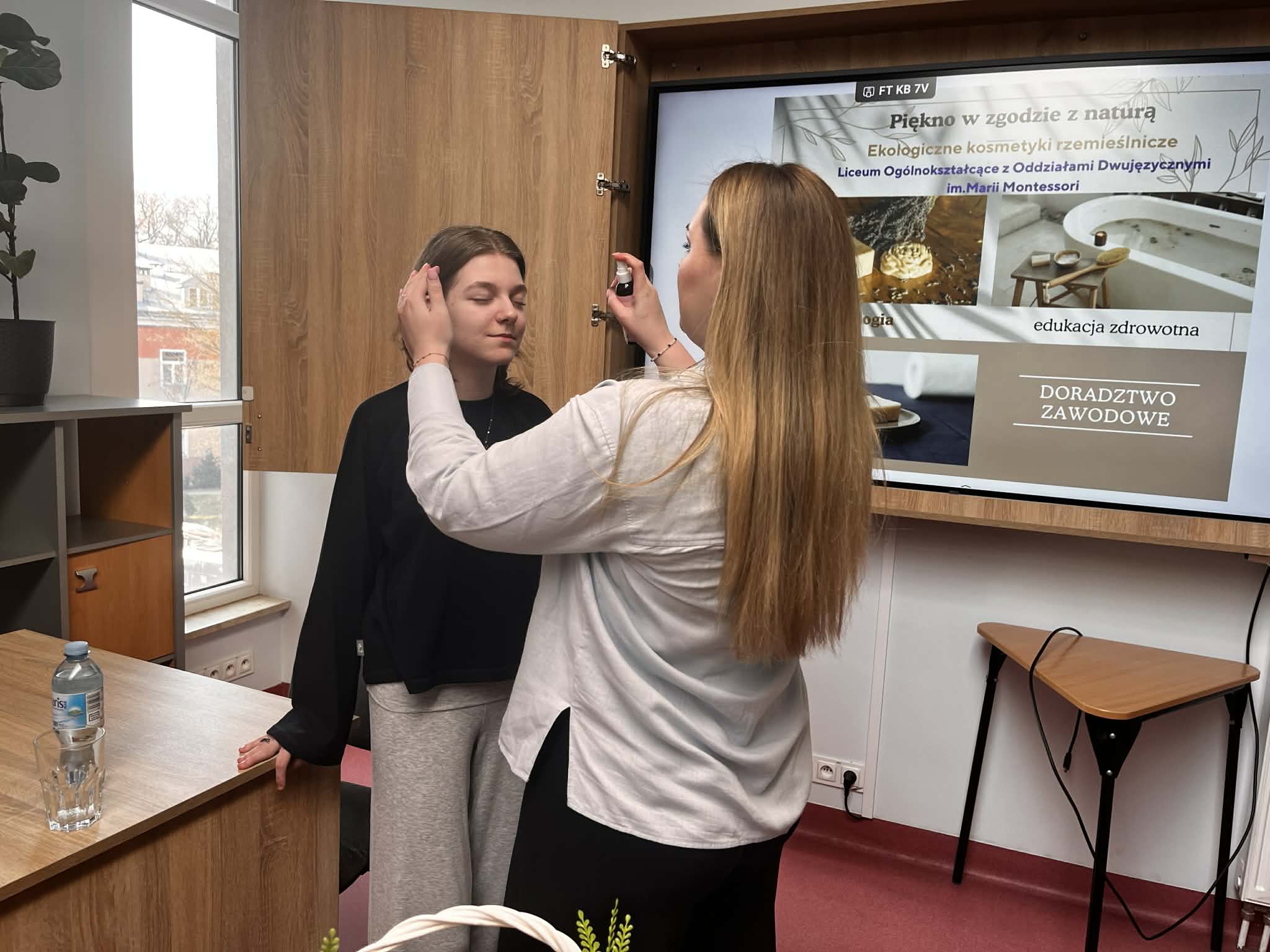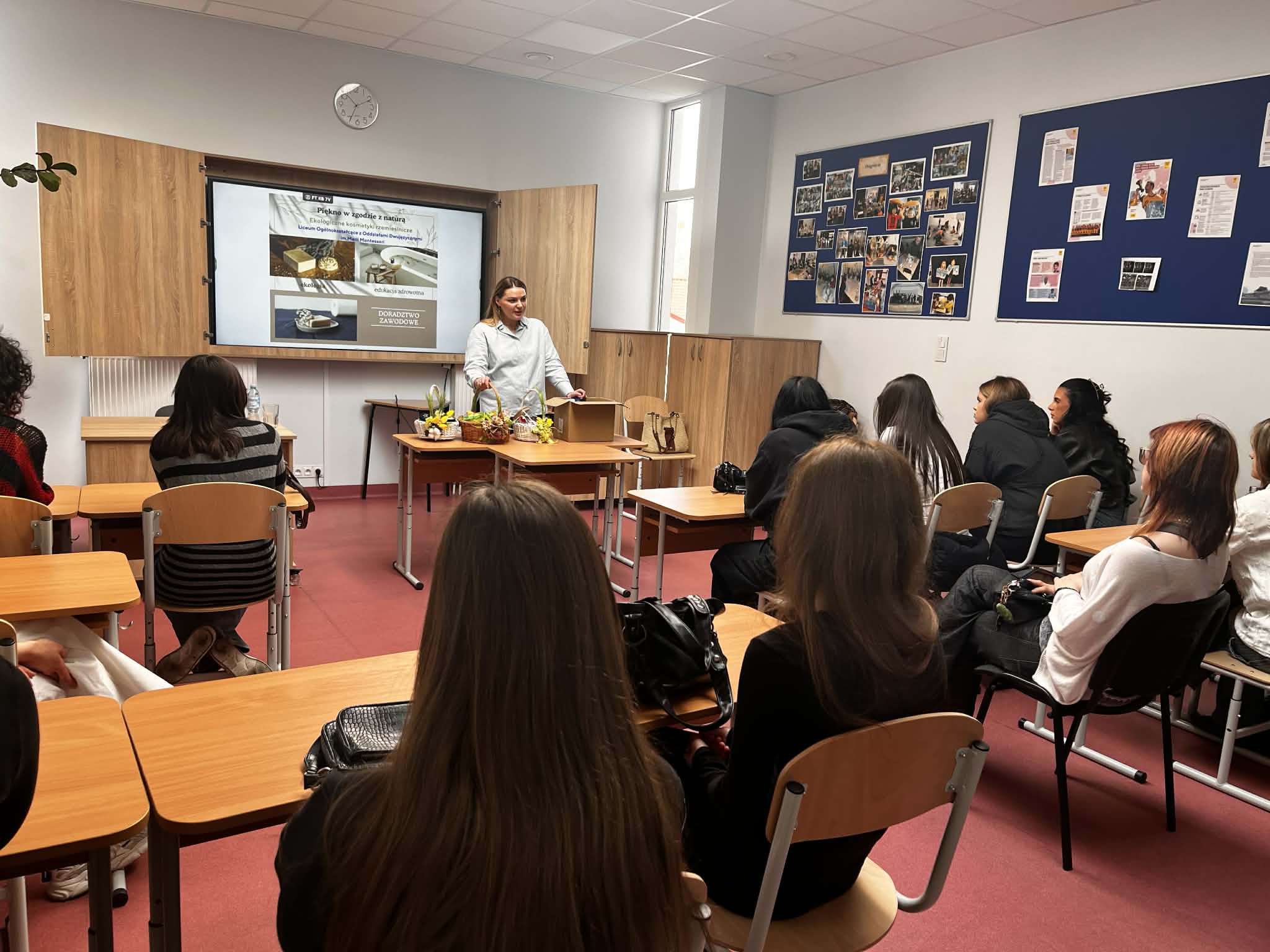W ramach naszego tygodnia tematycznego pojawiło się wyjątkowe spotkanie łączące edukację zdrowotną i … doradztwo zawodowe. Nasz gość Pani Maria z Mydlarni u Franciszka opowiedziała nam czym różnią się kosmetyki naturalne od konwencjonalnych, jakie składniki naturalne są przyjazne dla skóry oraz jak wygląda ścieżka kariery w branży kosmetyków naturalnych. No i crème de la crème naszego spotkania, to każda uczestniczka mogła bezpośrednio na sobie, pod czujnym okiem Pani Marii, zastosować ekokosmetyki. W pracowni unosiły się świeże zapachy naturalnych (wiosennych) składników.Takie spotkanie, to świetna okazja do poszerzenia wiedzy, rozwijania świadomości zdrowotnej oraz inspiracji do przyszłych ścieżek kariery.